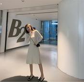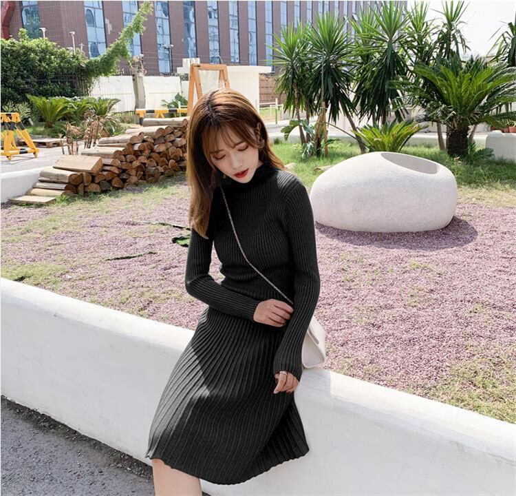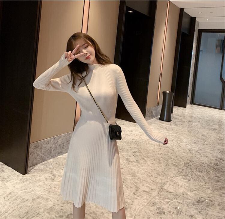 韓国ファッション 長袖 スリム 中・長セクション 編み物 ワンビース