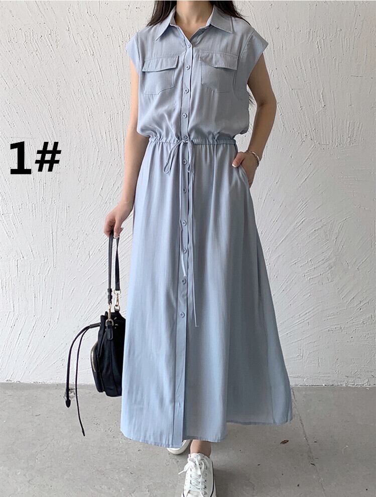 ワンピース レディース ノースリーブ シャツワンピース ロング丈 全3色