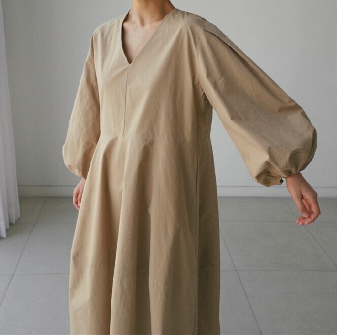 ワンピース ロング丈ワンピース レディース ランタンスリープ Vネック